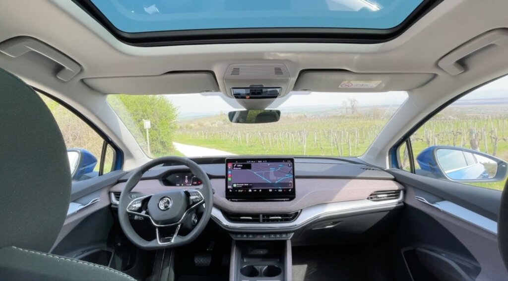 Vezetés szempontjából szerencsére jól teljesít az Enyaq. Annak ellenére, hogy egy nehéz elektromos szabaidőautó, jól fekszi az utat, jól reagál a kormánymozdulatokra, kellemesen bevehetők akár a nagyobb kanyarok is. A stabilitást elöl MacPherson, hátul pedig független felfüggesztés biztosítja.