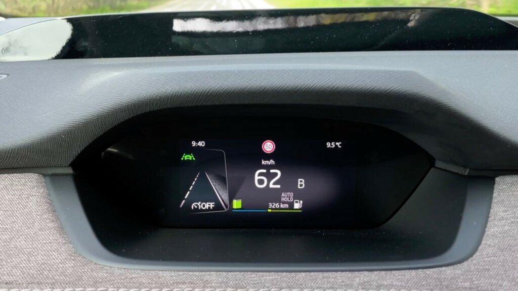 Beülve rögtön észrevehetjük, hogy itt nem spóroltak. Sem a hellyel, sem pedig az anyagokkal. Hátul lazán elfér akár három ember is, de kettő biztosan kényelmesen, bőven marad lábtér és fejtér is. Szerencsére a gyárban itt sem felejtették el, hogy a hátsó ajtók is érdemelnek kárpitozást, teljesen minőségi minden. A bal első ajtóba rejtve még a szokásos esernyőt is megtaláljuk, ergo ha útközben elkap a zápor és úgy kell kiszállni, nem fogunk megázni, annyira. A vezetőülésben viszont jó ülni, kényelmes az ülés, a sportos kormánynak pedig jó a fogása, és mivel multikormány van szó, lehet róla vezérelni a hangerőt, a hívást vagy éppen a tempomatot. A kormány mögött egy kicsi kijelző található, a panel jól látható, kijelzi a sávtartással, a sebességgel, valamint a hatótávval kapcsolatos információkat is.