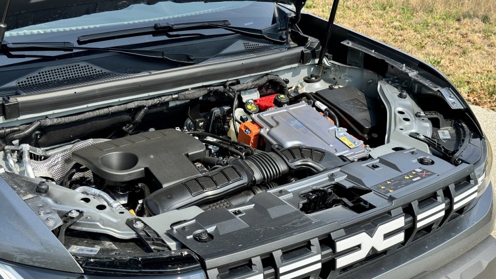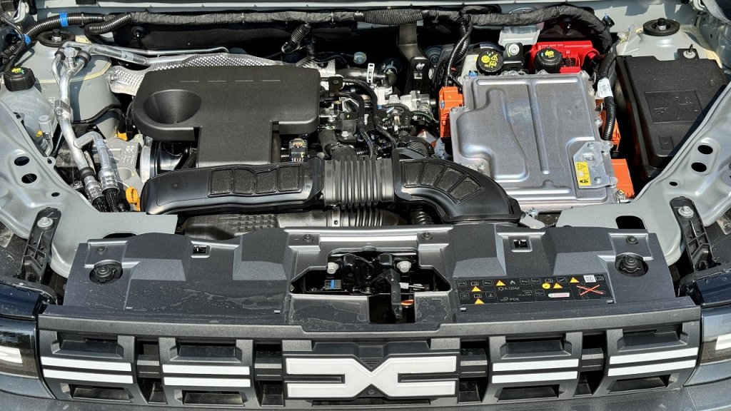 A másik opció a mild hybrid, ahol egy 1199 köbcentis turbós motor mellé szereltek még egy 48V-os indítómotor generátort és egy 0,8 kWh-s akkumulátort, a rendszer összeteljesítménye pedig 130 lóerő. A tesztmodell szíve az a full hybrid megoldás, ami áll egy négyhengeres, 1.6-os szívó benzinmotorból (94 LE, 148 Nm), egy villanymotorból (49 LE, 205 Nm), utóbbi hajtani is tud és összehangolja a váltó és a motor fordulatszámát, illetve még egy villanymotorból (15 kW), ami besegít a rendszer működésébe. A teljességhez még az 1,2 kWh-s akkumulátor tartozik, így pár száz métert villanymotoros hajtással is tud menni a Duster, a 140 lóerős összteljesítményt pedig egy 4 fokozatú több módú automata váltó juttatja el a kerekekhez.