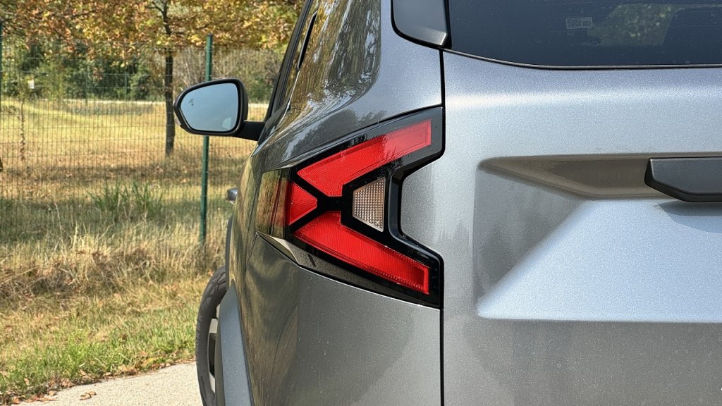 Oldalról sem fest rosszul az autó, megvannak a tipikus SUV-s jegyek, úgy mint a kerékjárati íveken és a padlólemezen végigfutó műanyag elemek, amelyek érdekes módon nem követik a kerék vonalát, ezzel is nagyautósabbá téve a dizájnt. A hátsó ajtók rejtett kilincset kaptak, ezek elég magasra kerültek, így a gyerekek nem fogják könnyedén elérni. A Duster hátulja is a lámpákról lesz leginkább emlékezetes, de jól mutat a spoiler, van ablaktörlő lapát is, a hátsó kerékdoboknál tetten érhető szélesítés pedig hátulról nézve növeli optikailag a kocsi méretét. A csomagtartó mérete sem azonos, motoroktól függ, hogy mekkora, a minimumot épp tesztalanyunk képviseli 414 literrel, a hátsó üléstámlákat síkban ledönve pedig 1302 liternyi teret lehet nyerni.