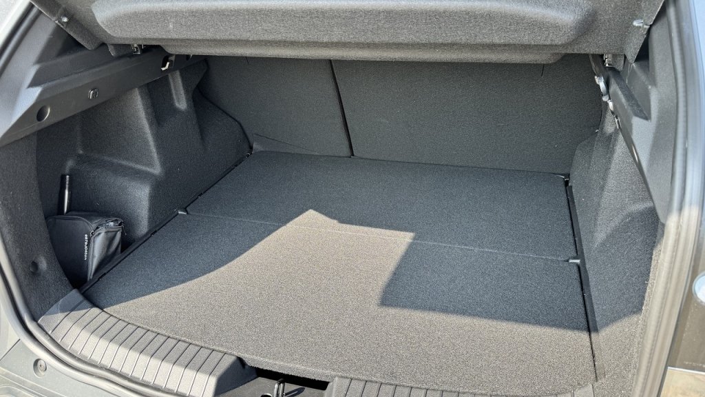 A belsőt tovább vizsgálva feltűnhet még a klímapanel, amit normál gombokkal és tekerővel lehet vezérelni, illetve a két USB-C csatlakozó is. Az ülések rövid távon kényelmesek, az oldaltartásuk jó, de messze nem fotelszerű az élmény, szóval 1-2 óránként érdemes egy hosszú út során megállni és megmozgatni magunkat. Tárolókból nincs hiány, hiszen a kesztyűtartó mellett vannak pohártartók, elrejthetünk cuccokat a könyöktámasz alatt vagy az ajtózsebekben is. Hölgyek számára lehet fontos információ, hogy bár napellenzőbe épített sminktükröt kapunk, világítás nem jár hozzá sajnos. Kicsit ügyetlen spórolások ezek.