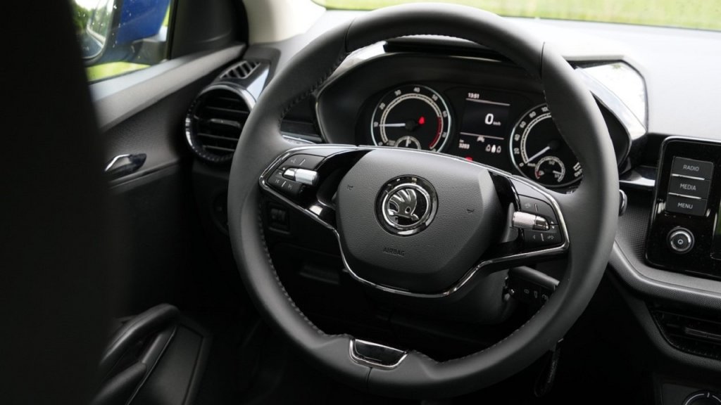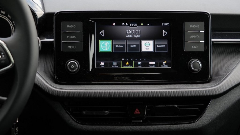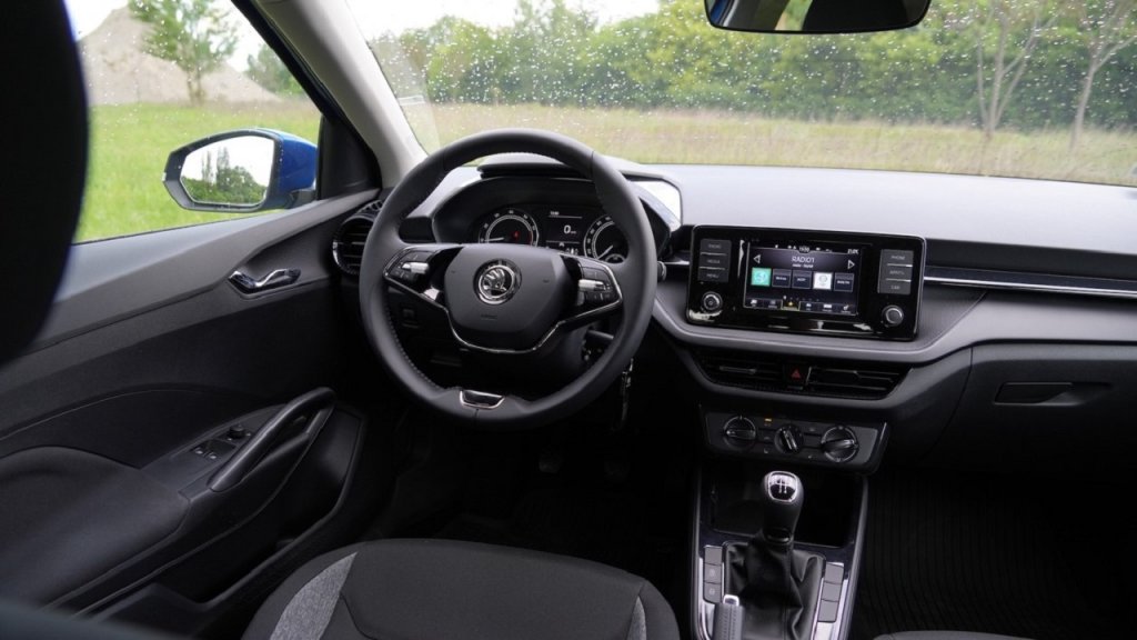 A belső olyan, mint szinte az összes konszerntársnál. Feltűnő az Octaviából (is) ismerős, immár kétküllős kormány, ennek látványát azért kicsit szokni kell. Jó viszont a fogása és multigombok is találhatók rajta. Mögötte a Skodától megszokott analóg műszereken láthatjuk a sebességet, a fordulatszámot és az üzemanyagszintet, a középső kis monokróm kijelzőn pedig a fogyasztás és néhány információ rajzolódik ki. Érdemes bepipálni egyébként a Simply Clever csomagot, mert akkor többek között visszapillantóba épített USB-csatlakozót (a fedélzeti kamerák miatt), telefontartót, esernyőt, és jó néhány praktikus dolgot kapunk még.